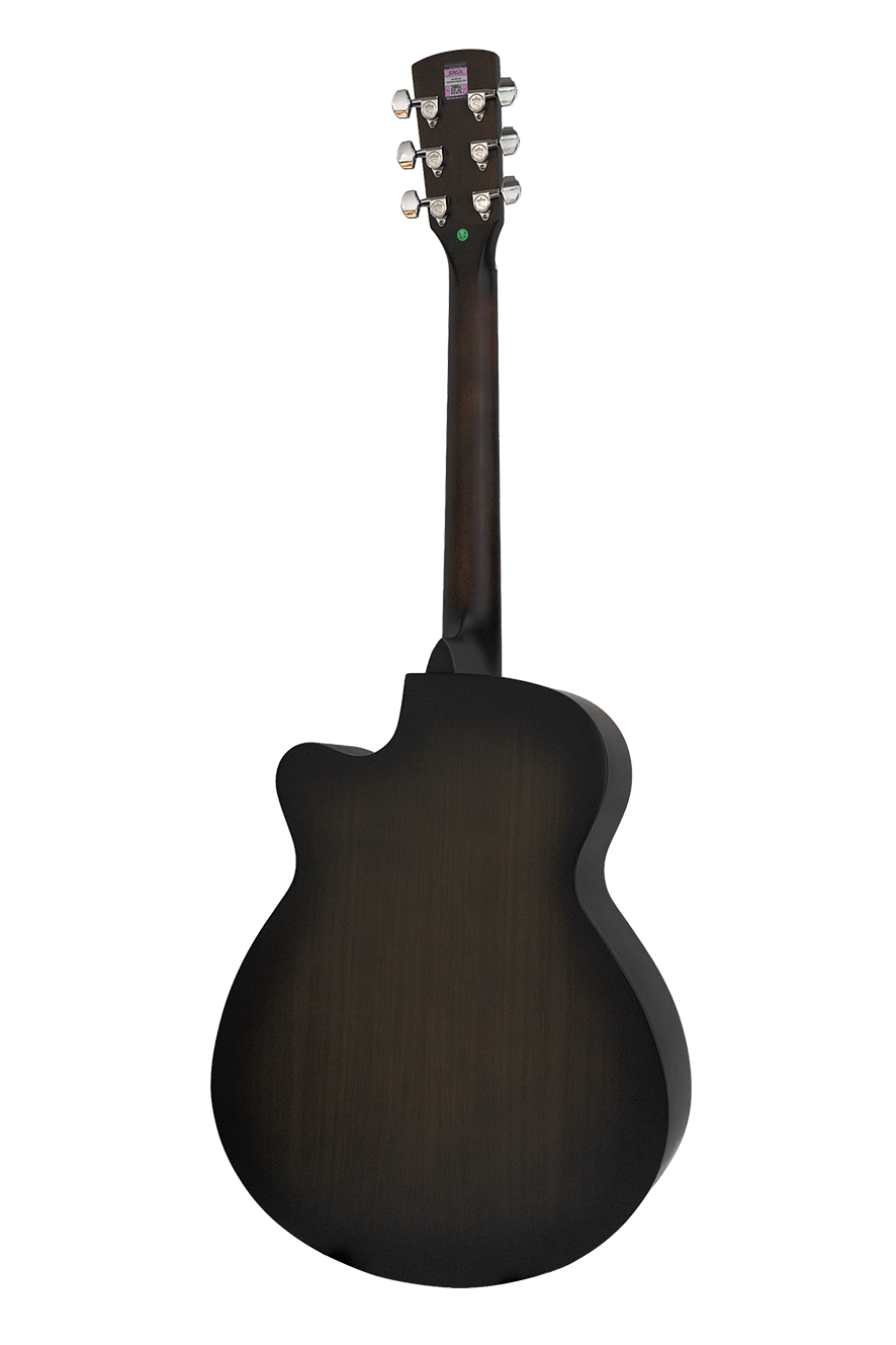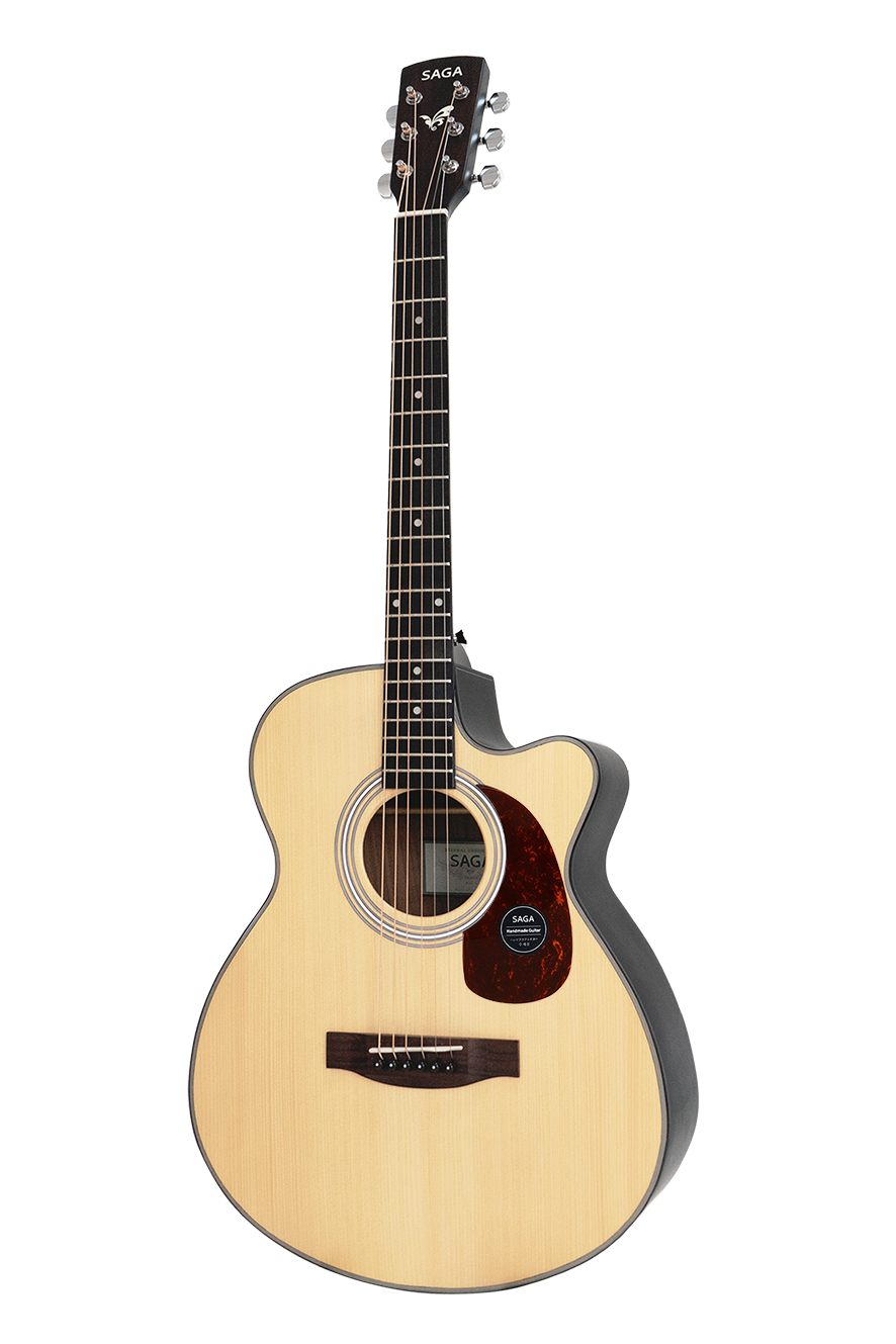 SAGA 800 Series has a Solid Sitka Spruce top, which blends stiffness and elasticity in just the right proportions, resulting in a broad dynamic range with crisp articulation. Laminated walnut back and sides create a sturdy yet receptive platform for the vibrating string energy sent by the guitar's top, which is less susceptible to changes in temperature and humidity.