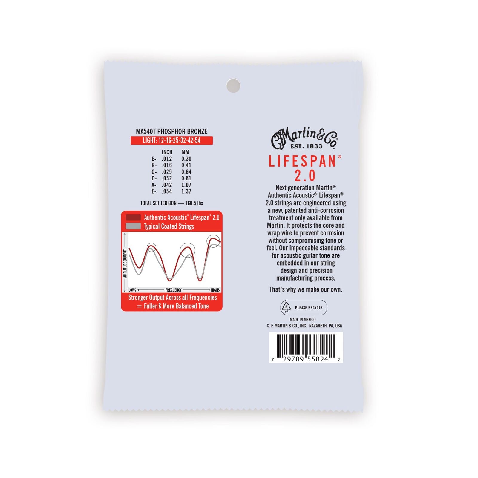 MARTIN Authentic Acoustic Lifespan® 2.0 Guitar Strings Phosphor Bronze Light 12-54