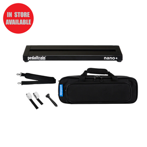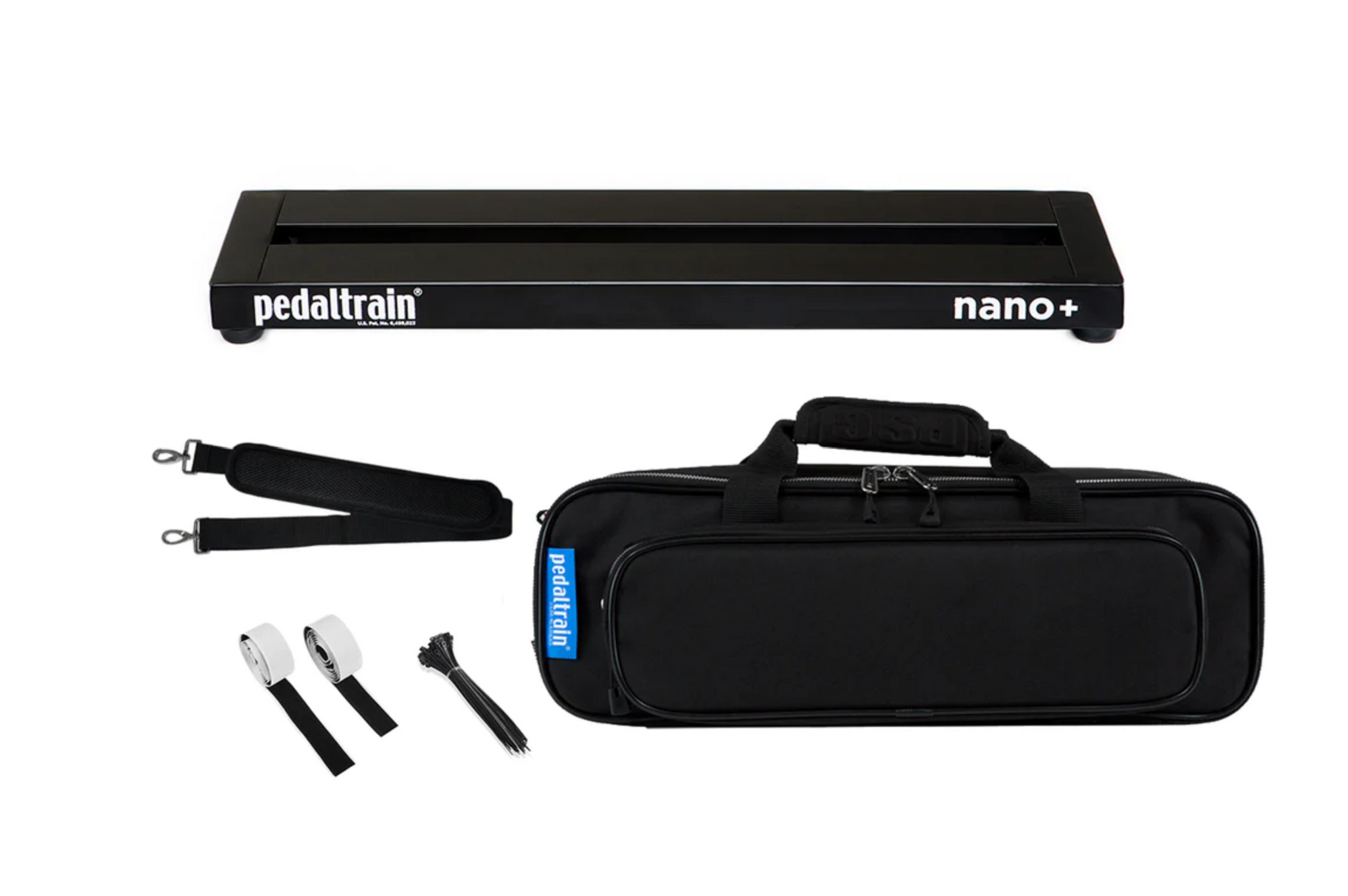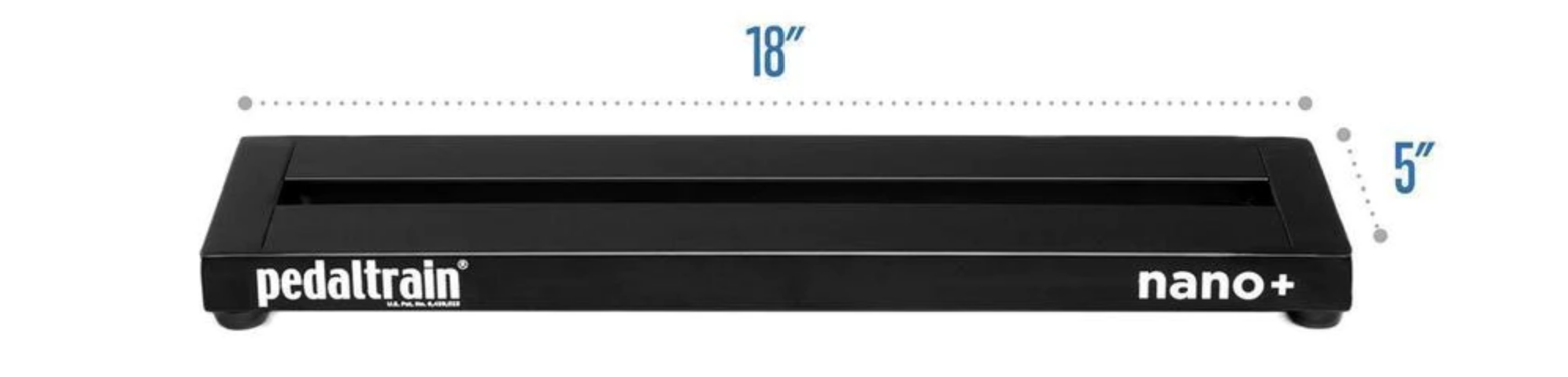 Don’t let its small size fool you. Nano+ is the foundation of some very powerful rigs. Ultra-compact and portable, Nano+ is similar to its little brother, Nano, but with 4” more space (for just a few more pedals) and Pedaltrain’s modified rail spacing. Even the smallest pedals grab hold of Nano+ and will not let go. Nano+ includes 36” of Pedaltrain’s professional grade hook-and-loop pedal fastener and plenty of zip ties for securing cables. Included with purchase is Pedaltrain’s fitted soft case (featuring a heavy-duty metal zipper and reinforced stress points).